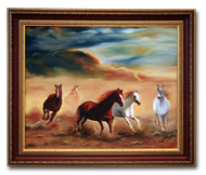 İhtişamlı duruşu ve kuvvetli yapısıyla doğaya karşı koşan atlar, ressamın yaplı boya at tablolarında hayat buluyor.